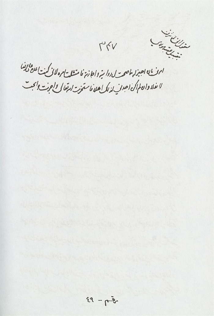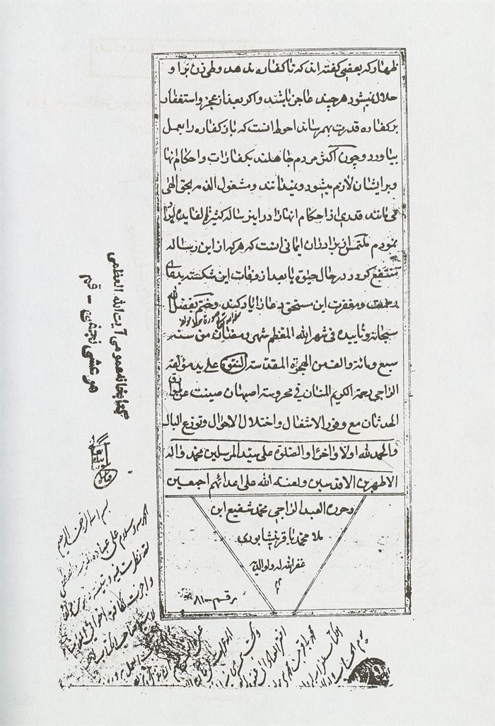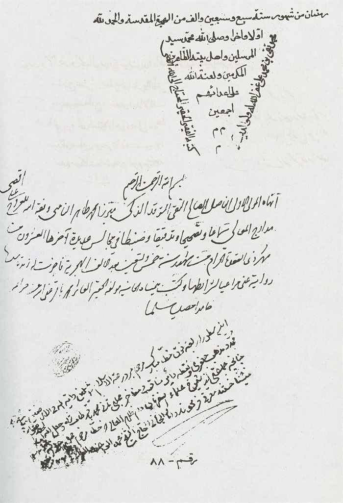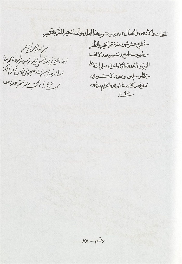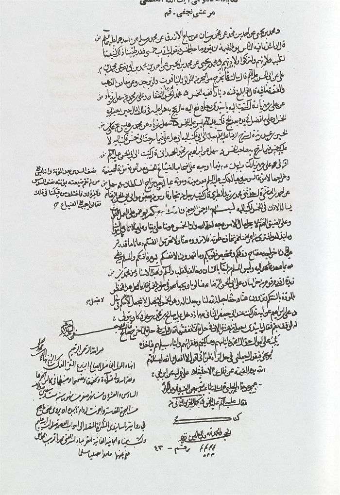 وكتب بيمناه الداثرة أفقر عباد اللّٰه محمد باقر بن محمد تقي عفي عنهما بالنبي وآله المطهرين، حامدا مصليا مسلما.