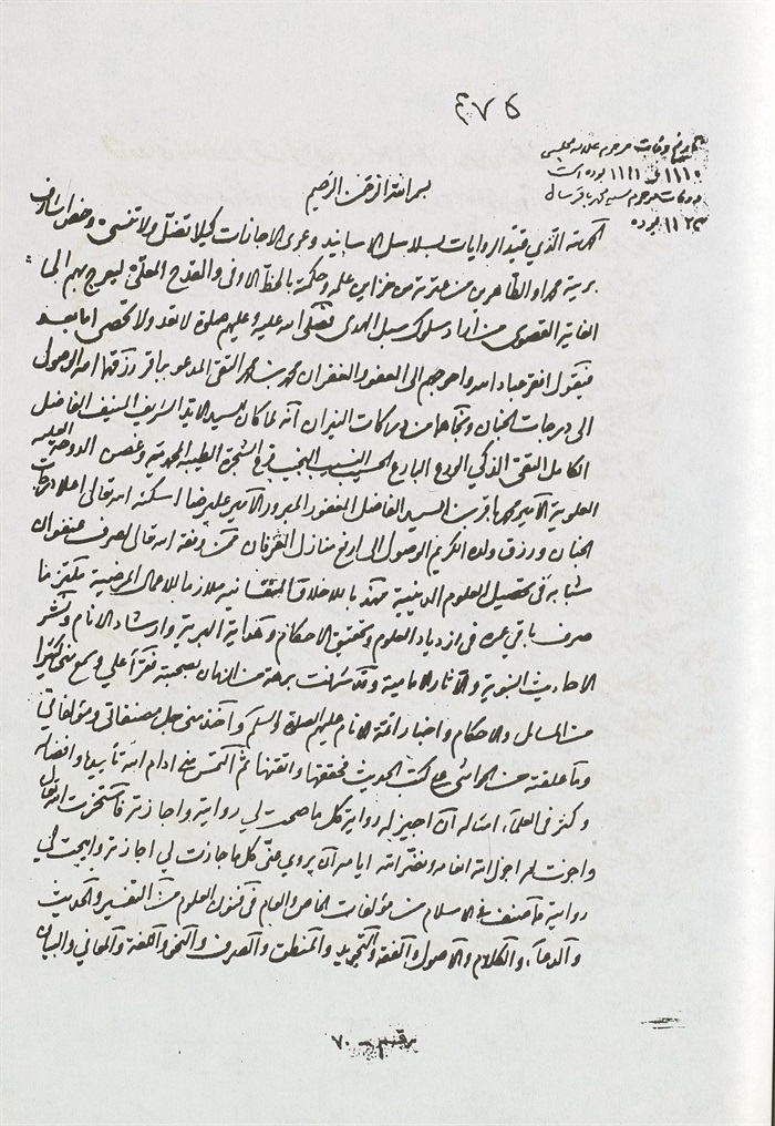 فان الأخ في اللّٰه المحبوب لوجه اللّٰه المبتغي لمرضاته مولانا أبو البقاء وفقه اللّٰه تعالي، لما طال تردده إلي ومذاكرته لدي وأخذ مني شطرا وافيا من العلوم الدينية، استجازني فيما أخذ عني من أخبار أعلام الدين وخلفاء اللّٰه في الأرضين وأهل بيت سيد المرسلين صلوات اللّٰه عليهم أجمعين.