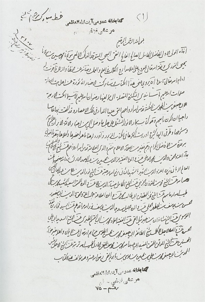 (1) بسم اللّٰه الرحمن الرحيم وسلام علي عباده الذين اصطفي.