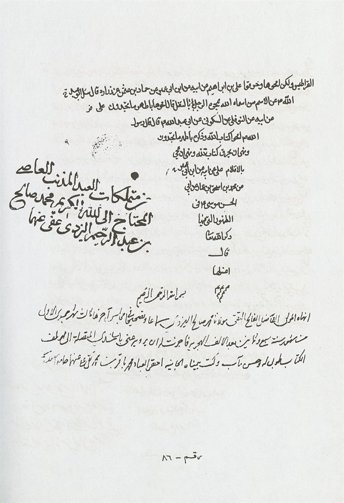 [2] بسم اللّٰه الرحمن الرحيم الحمد لله وسلام علي عباده [الذين اصطفي] أما بعد: