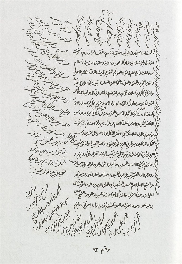 ان تشجيعه المستمر كان دافعة لنا في الفحص الجاد، حتی زرنا بعض المدن لهذا الغرض وطلبنا من جملة من المكتبات الكبيرة تصوير ما لديها من الاجازات، فتجمع من مجموع صلاتنا بالأشخاص والمكتبات هذه المجموعة التي يجدها القاريء العزيز ماثلة بين يديه . مع أننا نعلم أن هناك اجازات أخرى لم يرض أصحابها اطلاعنا عليها أو منعتنا الموانع من نسخها أو تصويرها .