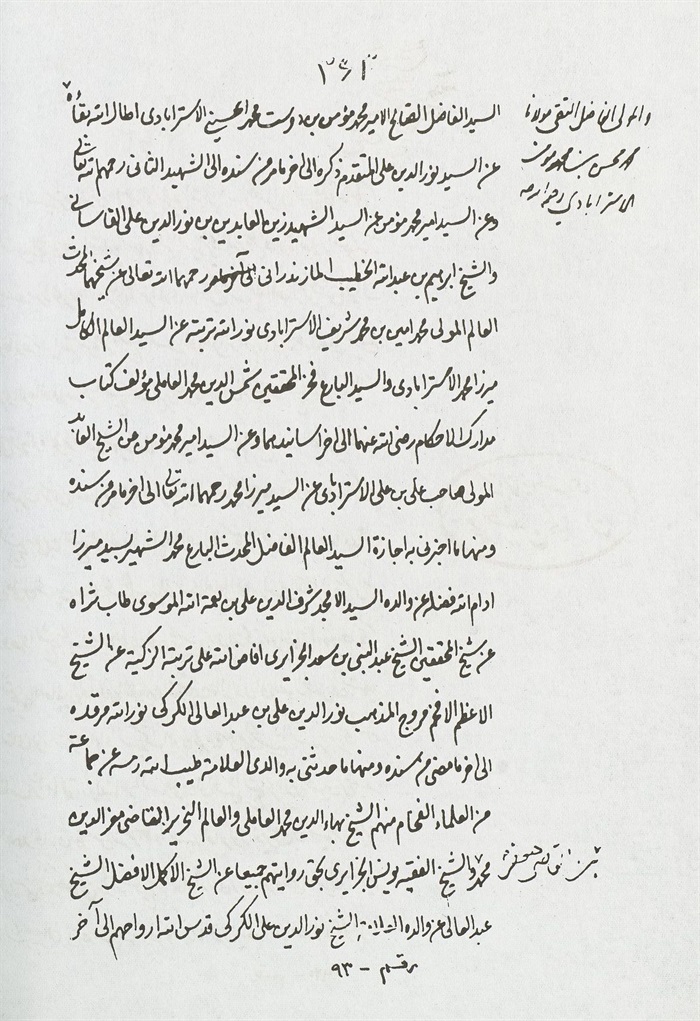 فقد قرأ علي المولي الفاضل التقي الألمعي الأخ في اللّٰه المحبوب لوجه اللّٰه مولانا ابن علي وفقه اللّٰه تعالي لمراضيه، سماعا في أدعية الصحيفة السجادية مع ما ألحق بها، صلوات اللّٰه علي من ألهمها، في مجالس آخرها أواسط شهر اللّٰه المكرم من شهور سنة [اثنتين] وسبعين وألف.