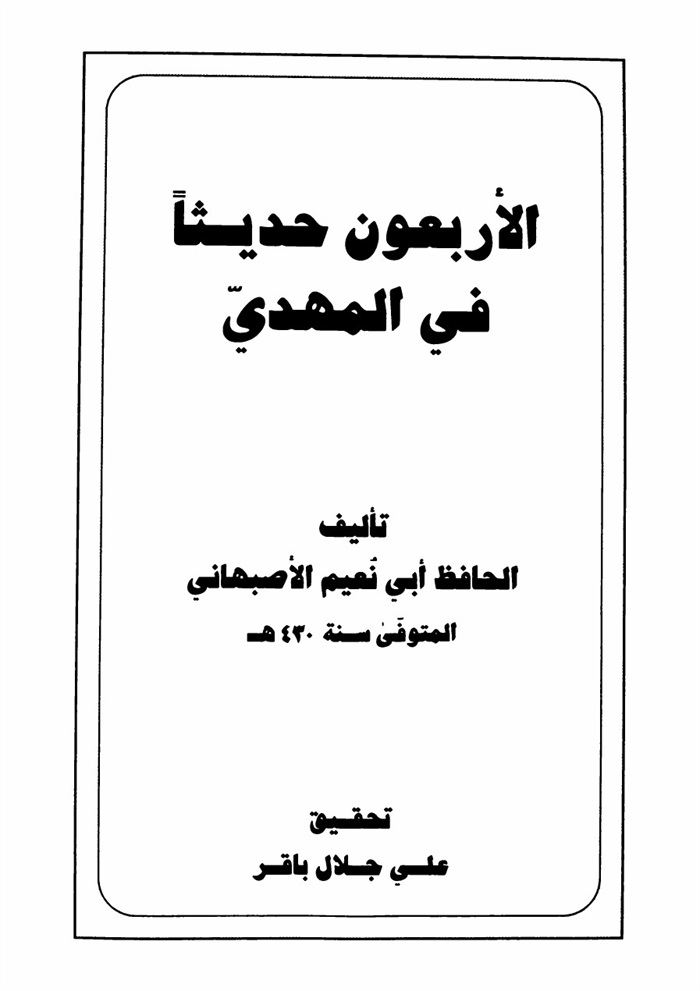 * الأربعون حديثاً في المهدي - عجّل الله تعالى فرجه الشريف - للحافظ أبي نُعيم الأصبهاني ، المتوفّى سنة 430 ه.