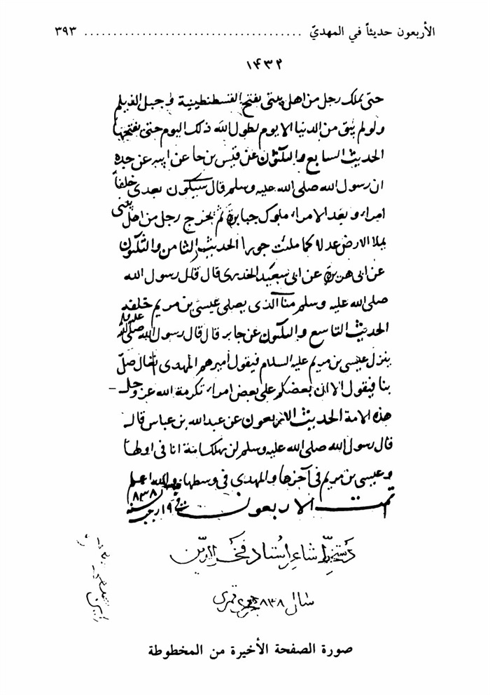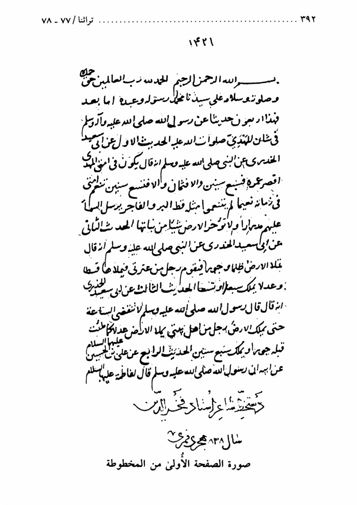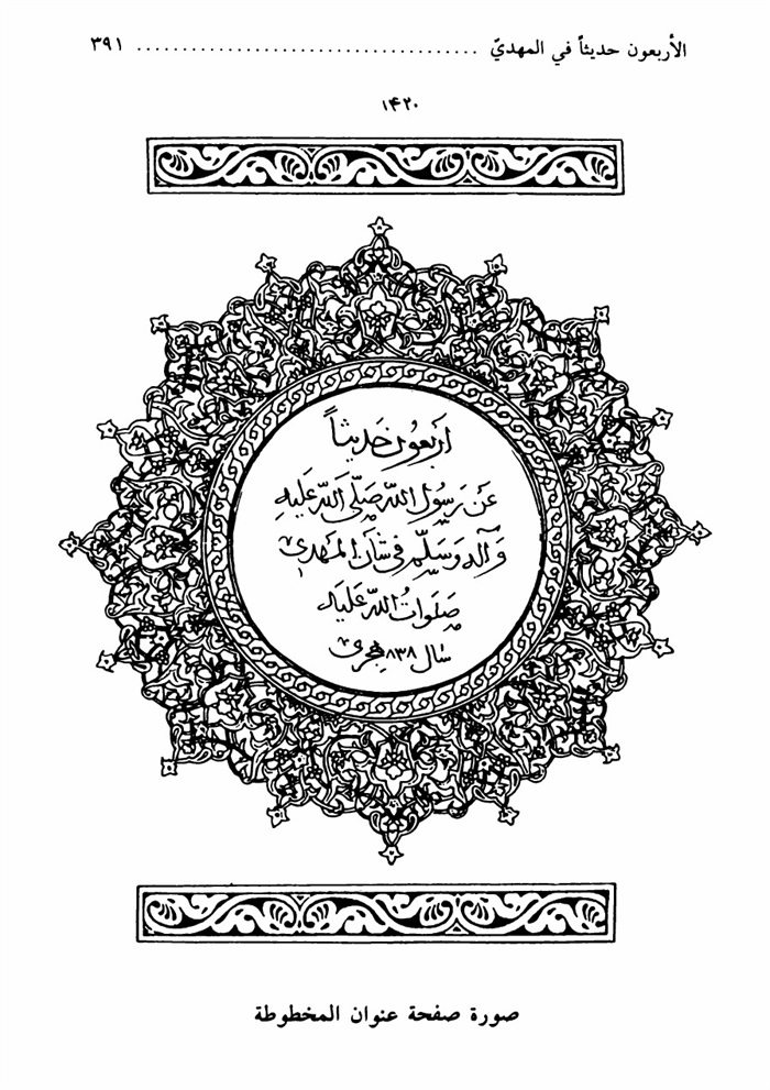 * صورة الغلاف : نموذج من مخطوطة «الأربعون حديثاً في المهدي» للحافظ أبي نُعيم الأصبهاني ، المتوفّى سنة 430 ه- ، المنشورة في هذا العدد ، ص 357 - 453.