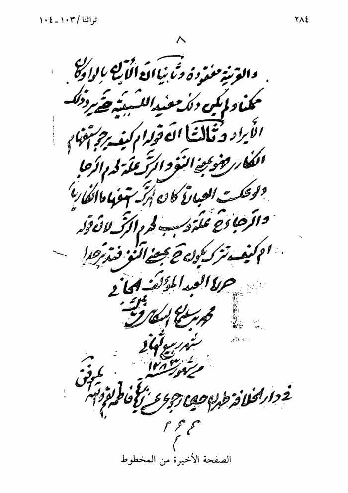 * صورة الغلاف : نموذج من مخطوطة (شرح هيهات ما ذلك الظنّ بك) للشيخ محمّد التنكابُني المتوفّى 1302 أو 1310 ه. والمنشورة في هذا العدد.