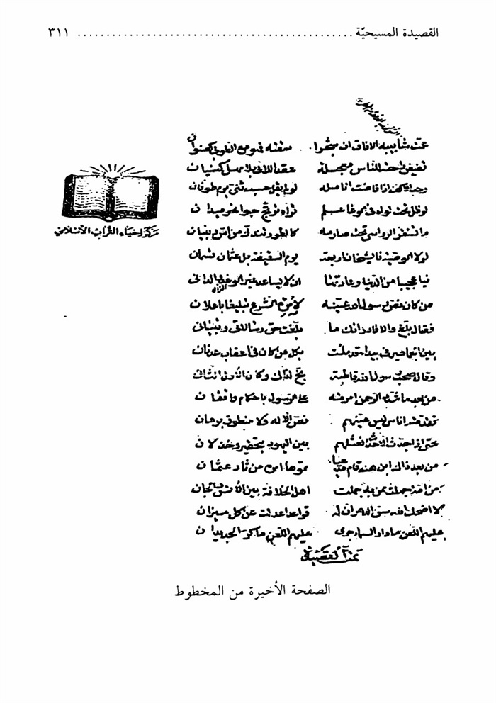 * القصيدة المسيحيّة في مدح أمير المؤمنين عليه السلام ، للملاّ مسيحا المتوفّى 1127 ه.