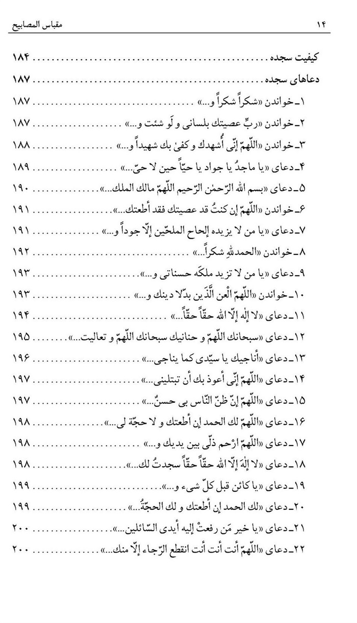 «اَللّهُمَّ أَنْتَ الْوَلِیُّ الْحَمیدُ الْغَفُورُ الْوَدُودُ الْمُبْدِئُ الْمُعیدُ ذُو الْعَرْشِ الْمَجیدُ وَ الْبَطْشِ الشَّدیدِ فَعّالٌ لِما یُریدُ یا مَنْ هُوَ أَقْرَبُ إِلَیَّ مِنْ حَبْلِ الْوَریدِ یا مَنْ هُوَ عَلی کُلِّ شَیْ ءٍ شَهیدٌ یا مَنْ لایَتَعاظَمُهُ غُفْرانُ الذُّنُوبِ وَ لا یَکْبُرُ عَلَیْهِ الصَّفْحُ عَنِ الْعُیُوبِ أَسْئَلُکَ بِجَلالِکَ وَ بِنُورِ وَجْهِکَ الَّذی مَلاَءَ أَرْکانَ عَرْشِکَ وَ بِقُدْرَتِکَ الَّتی قَدَّرْتَ بِها عَلی خَلْقِکَ وَ بِرَحْمَتِکَ الَّتی وَسِعَتْ کُلَّ شَیْ ءٍ وَ بِقُوَّتِکَ الَّتی ضَعُفَ بِها کُلُّ قَوِیٍّ وَ بِعِزَّتِکَ الَّتی ذَلَّ لَها کُلُّ عَزیزٍ وَ بِمَشِیَّتِکَ الَّتی صَغُرَ فیها کُلُّ کَبیرٍ وَ بِرَسُولِکَ الَّذی رَحِمْتَ بِهِ الْعِبادَ وَ هَدَیْتَ بِه إِلی سَبیلِ(2) الرَّشادِ وَ بِأَمیرِالْمُوءْمِنینَ عَلِیِّ بْن أَبیطالِبٍ أَوَّلَ مَنْ آمَنَ بِرَسُولِکَ وَ صَدَّقَ وَ الَّذی وَفی بِما عاهَدَ عَلَیْهِ وَ تَصَدَّقَ وَ بِالاْءِمامِ الْبَرِّ عَلِیِّ بْنِ مُحَمَّدٍ علیهماالسلام الَّذی کَفَیْتَهُ حیلَةَ الاْءَعْداءِ وَ أَرَیْتَهُمْ عَجیبَ الاْآیَةِ إِذْ تَوَسَّلُوا بِه فِی الدُّعاءِ أَنْ تُصَلِّیَ عَلی مُحَمَّدٍ وَ آلِ مُحَمَّدٍ فَقَدِ اسْتَشْفَعْتُ بِهِمْ إِلَیْکَ وَ قَدَّمْتُهُمْ أَمامی وَ بَیْنَ یَدَیْ حَوائِجی وَ أَنْ تَجْعَلَنی مِنْ کِفایَتِکَ فی حِرْزٍ حَریزٍ وَ مِنْ کَلائَتِکَ تَحْتَ عِزٍّ عَزیزٍ وَ تُوزِعَنی شُکْرَ آلائِکَ وَ مِنَنِکَ وَ تُوَفِّقَنی لِلاِْعْتِرافِ بِأَیادیکَ وَ نِعَمِکَ یا أَرْحَمَ الرّاحِمینَ».(3)