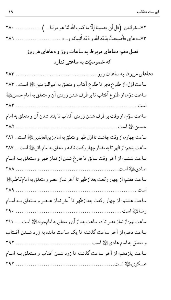 مؤلف گوید که: اگر در این ساعتهای روز و شب این دعا را بخواند مناسب تر خواهد بود. این است دعا: