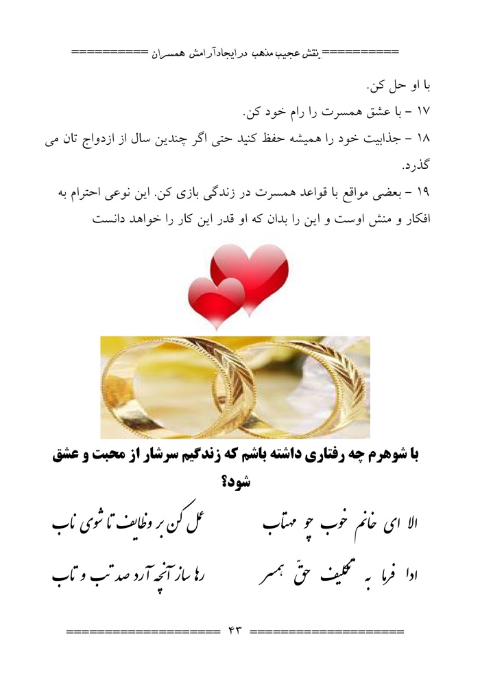 با شوهرم چه رفتاري داشته باشم كه زندگيم سرشار از محبت و عشق شود؟........ 43