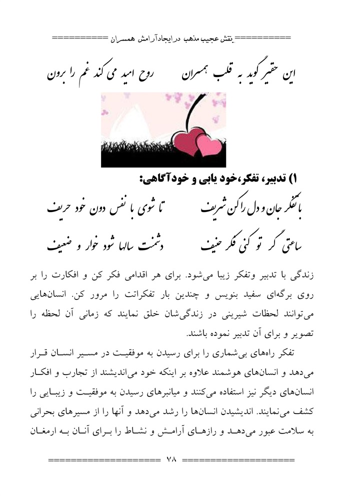 1) تدبیر، تفکر،خود یابي و خودآگاهی: 78