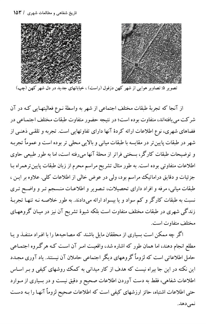 تاریخ شفاهی و مطالعات شهری (اهمیت تاریخ شفاهی و تبیین آن در مطالعات شهری در راستای تولید دور نمایی از دگرگونی فضایی زندگی اجتماعی در خلال تحولات شهری عصر نوین) / رضا مسعودی نژاد...141