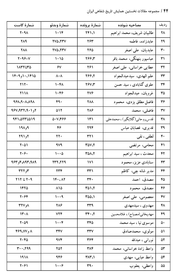 نمونه هایی از تاریخ شفاهی تولید شده در داخل کشور.