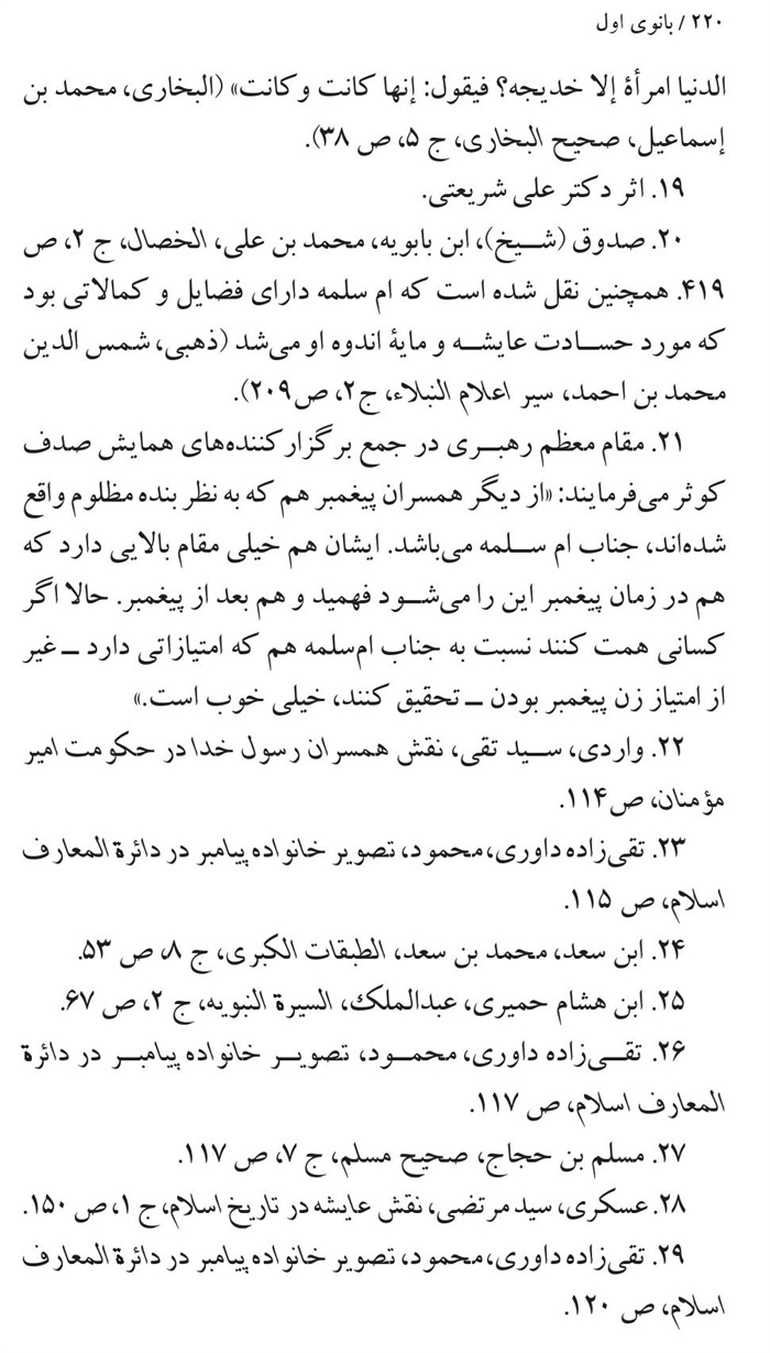 198. واردی، سید تقی، نقش همسران رسول خدا در حکومت امیرمؤمنان(علیه السلام)، بوستان کتاب، قم، 1393.