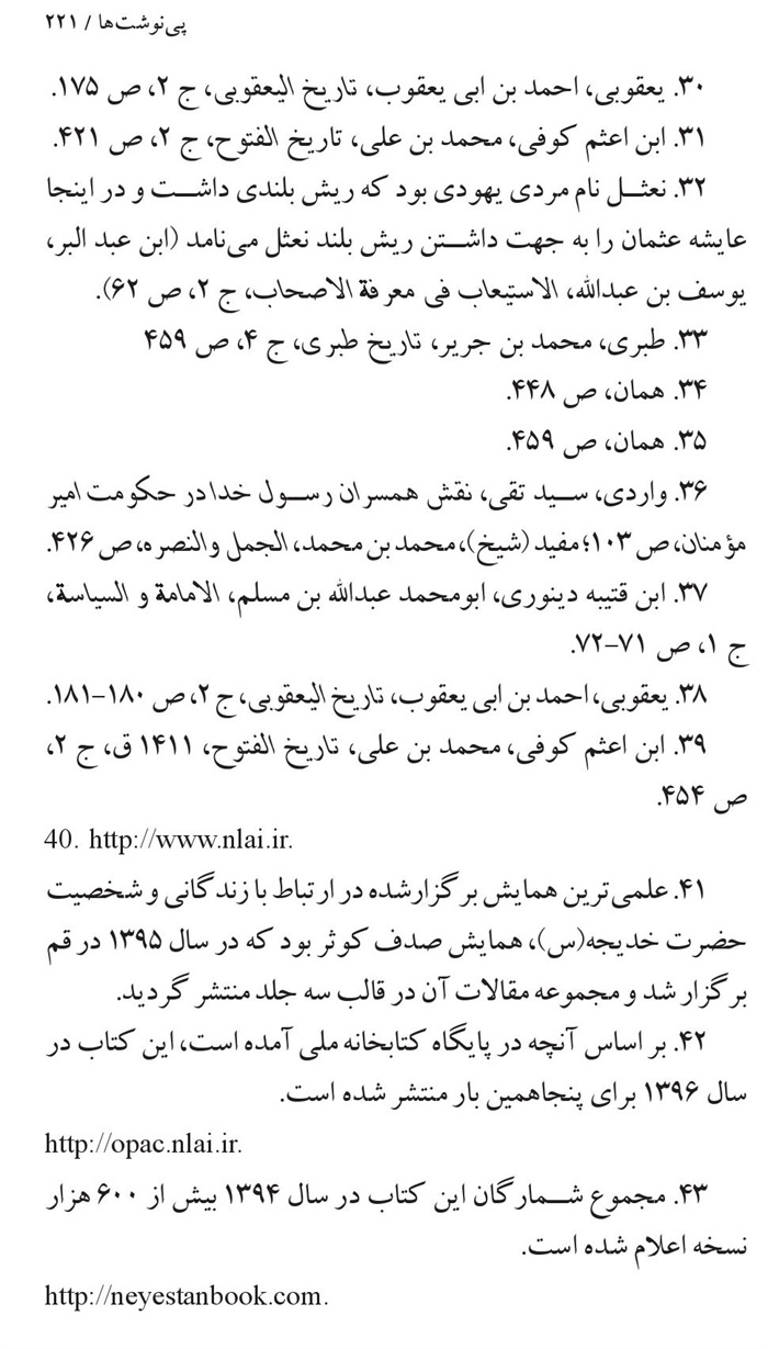 143. عسکری، سید مرتضی، نقش عایشه در تاریخ اسلام، دانشکده اصول دین، قم، 1377.