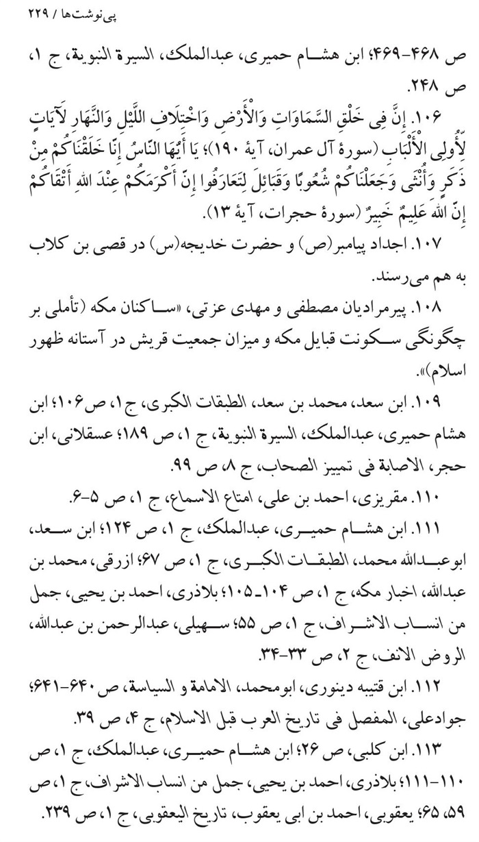 179. پیرمرادیان، مصطفی و مهدی عزتی، ساکنان مکه (تأملی بر چگونگی سکونت قبایل مکه و میزان جمعیت قریش در آستانه ظهور اسلام)، تاریخ فرهنگ و تمدن اسلامی سال پنجم، شماره 14، 1391.