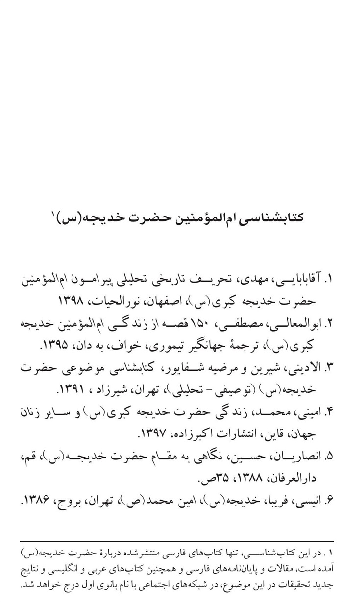 کتابشناسی ام المؤمنين حضرت خدیجه (سلام الله علیها)(1)