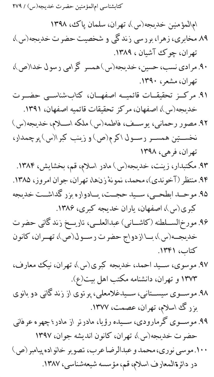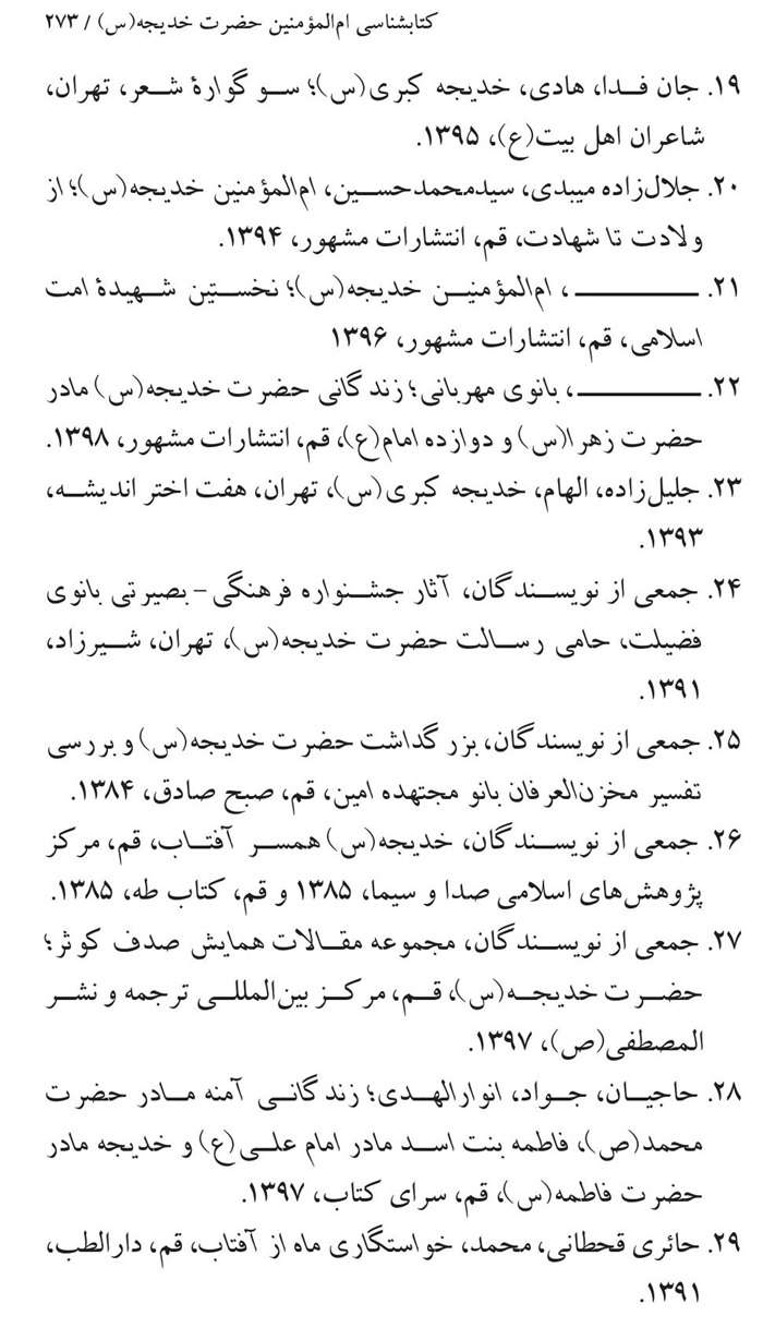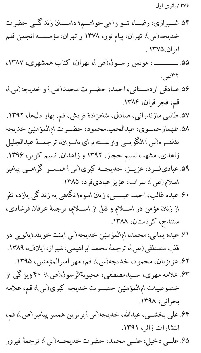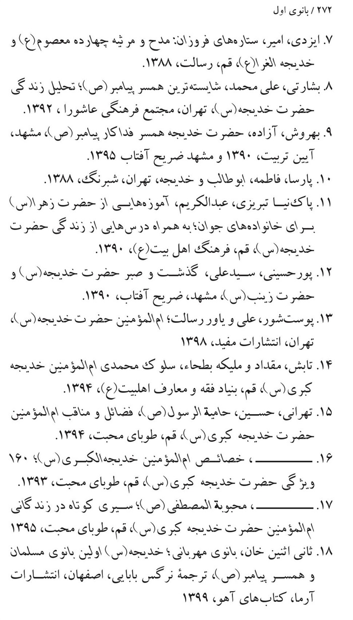 کتابشناسی بانوی اول ام المؤمنین حضرت خدیجه(سلام الله علیها) .............271