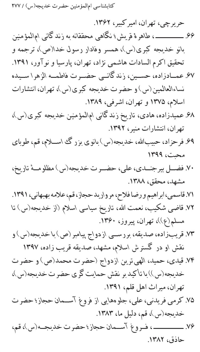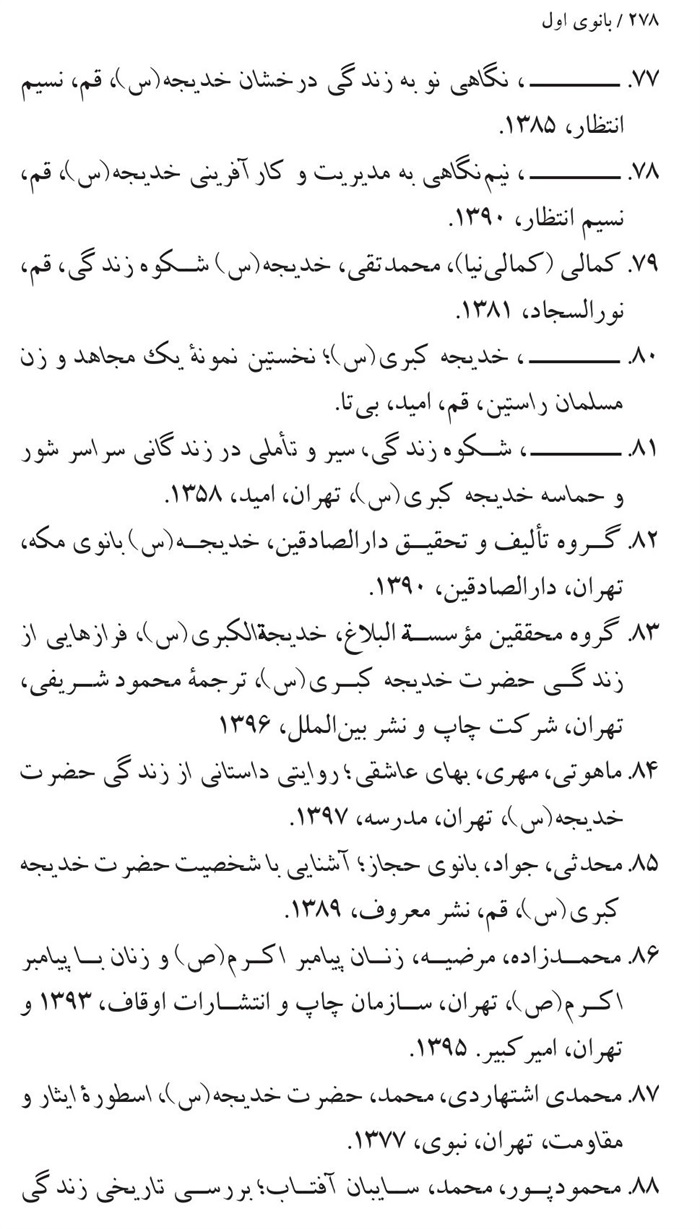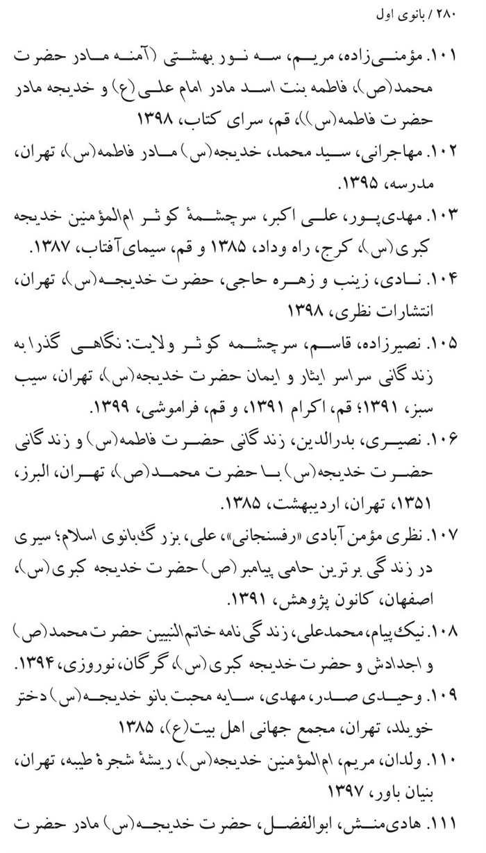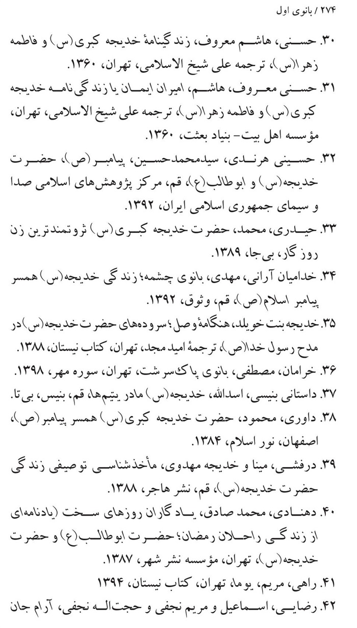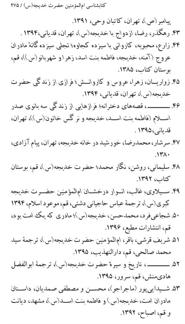 کتابشناسی بانوی اول ام المؤمنین حضرت خدیجه(سلام الله علیها) .............271