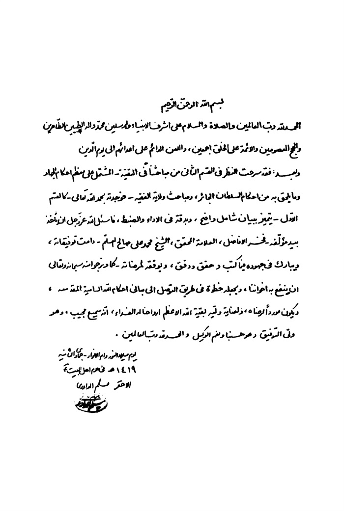 ونسأل الله تبارك وتعالى أن يمدّنا بالعون والتوفيق وأن يجعله عملاً خالصاً لوجهه الكريم، ومحلّاً لرضاه، بحق محمّد وآله الطاهرين صلوات الله عليهم أجمعين.