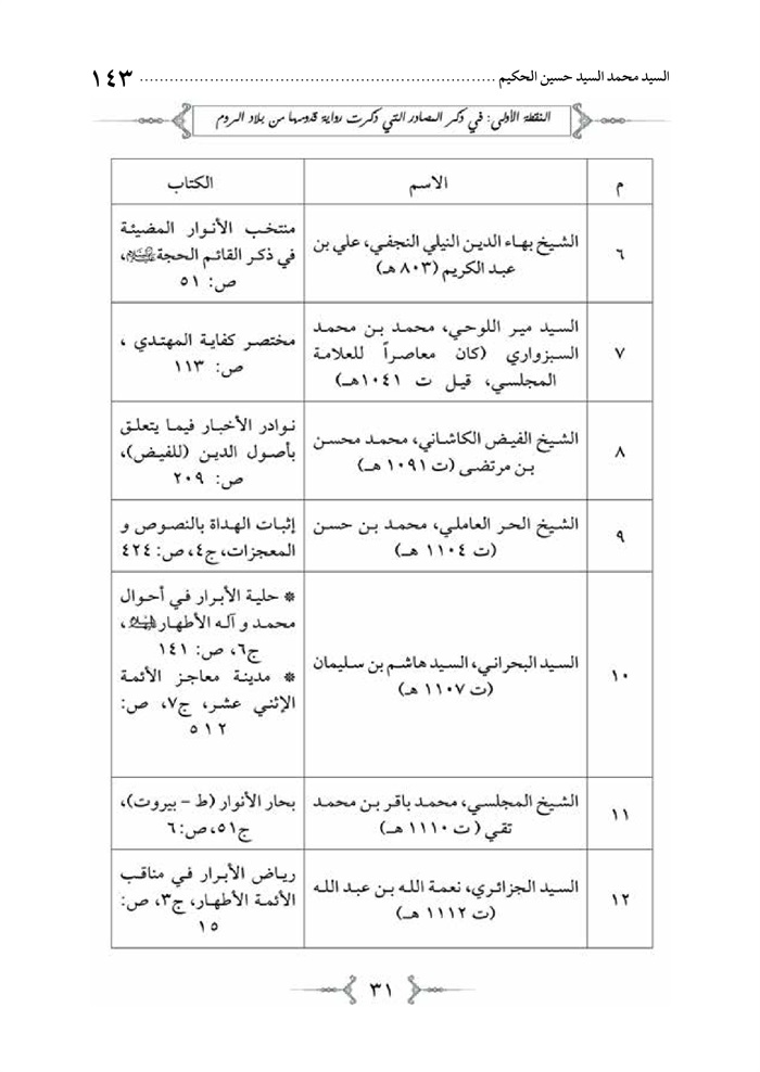 فيما بلغ عدد الكتب التي استلت منها البحوث المرتبطة بالإمام المهديّ (عَجَّلَ اللّهُ تَعَالَي فَرَجَهُ الشَریف) (57) مصدراً قابلاً للزيادة بعد العثور على مصادر أخرى لم تذكر هنا.
