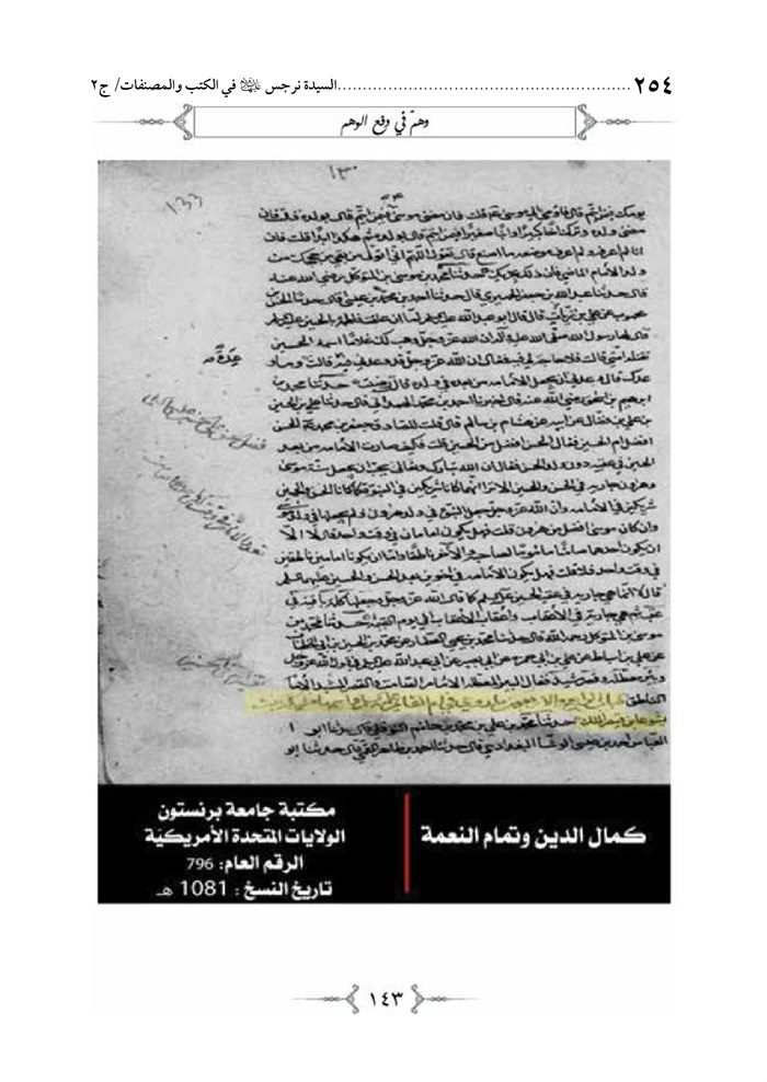 تمام الكلام في إسلام أم الإمام (عجل الله تعالی فرجه الشریف) / الشيخ حميد عبد الجليل الوائلي ... 503